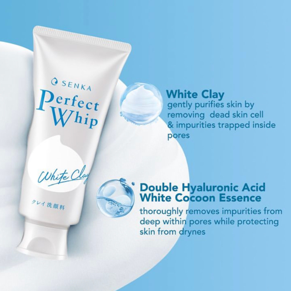 Discover the power of Japanese skincare with SENKA Perfect Whip White Clay. This creamy facial cleanser combines the purifying power of natural white clay with SENKA’s signature rich, micro-dense foam to deeply cleanse pores, absorb excess sebum, and remove dead skin cells—without stripping the skin of essential moisture.
